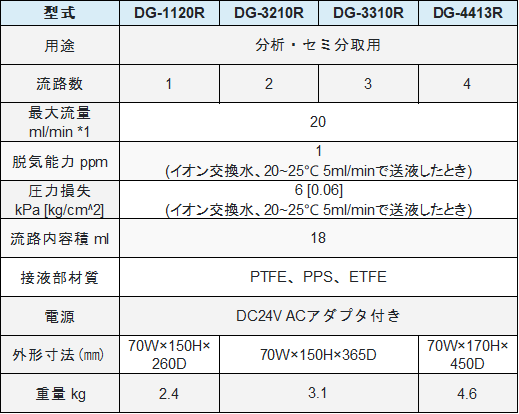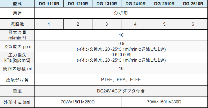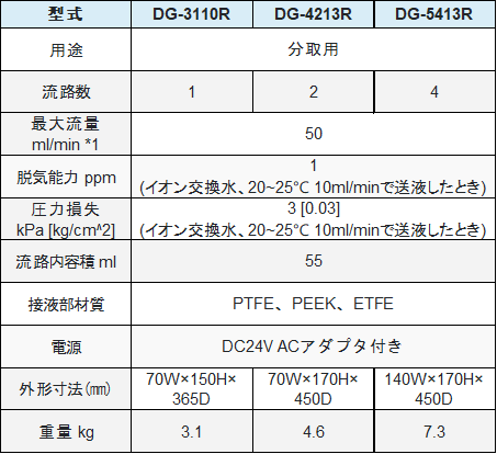 ※1 最大流量 : 用途、使用溶媒等により実用最大流量が増減します。数値は、使用の目安にして下さい。